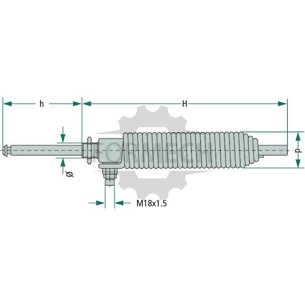 hodící se pro typ 0040, 0042, 0044, 0050, 0070, 0072, 0074, 0075Hydraulický válec, jednočinný s vnější pružinou, typ 0510 (51)
