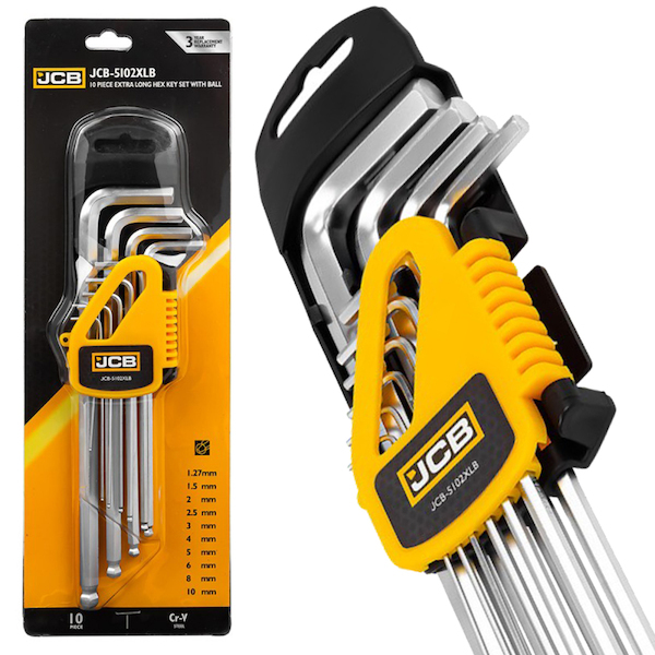 Technicke parametry produktu JCB IMBUS s kuličkou, Sada 10 ks, 1,27-10mm, dlouhé od vyrobce JCB Tools s kat. kodem JCB-5102XLB.