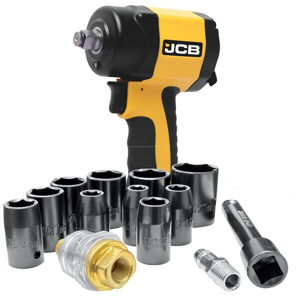 Technicke parametry produktu JCB Pneumatický rázový utahovák 1/2" s nástrčnými hlavicemi (10ks) od vyrobce JCB s kat. kodem JCB-RP9515 KIT.