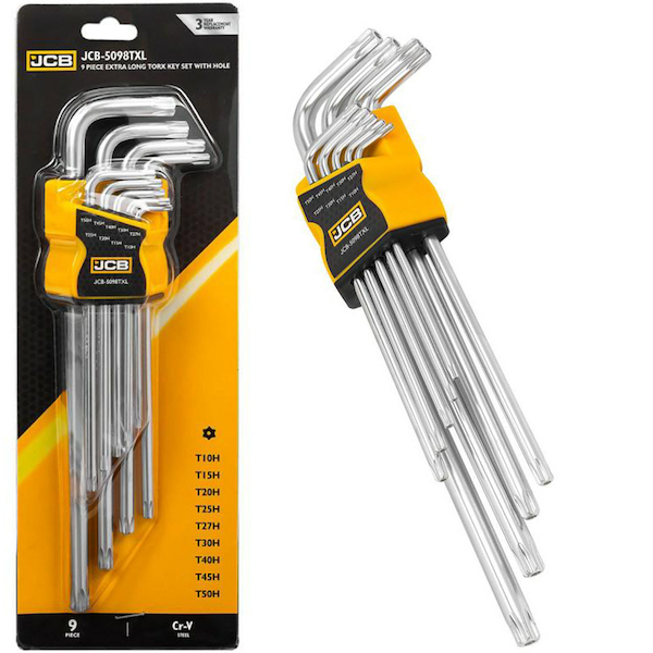 Technicke parametry produktu JCB Sada klíčů TORX extra dlouhá 9ks od vyrobce JCB s kat. kodem JCB-5098TXL.