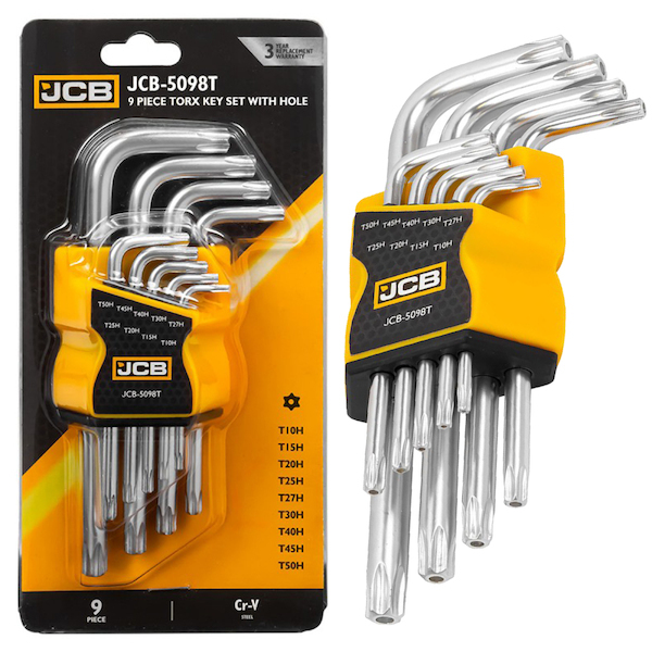 Technicke parametry produktu JCB TORX s dírou, Sada 9ks, T10H-T50H od vyrobce JCB Tools s kat. kodem JCB-5098T.