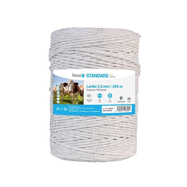 Lanko pro elektrický ohradník, průměr 2,5 mm, bílé, délka 250 m od výrobce VNT electronics s.r.o. s kat. kódem FE 8630: