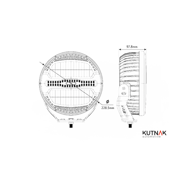 Technicke parametry produktu LED dálkový světlomet s pozičním světlem, 228,5 x 97,8 mm od vyrobce Kutnak s kat. kodem 725038.