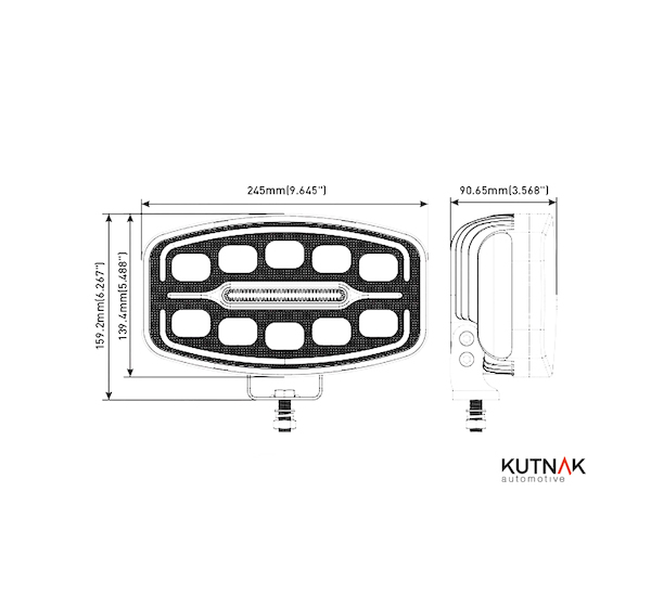 Technicke parametry produktu LED dálkový světlomet s pozičním světlem, 245 x 139,4 x 90,65 mm od vyrobce Kutnak s kat. kodem 725036.