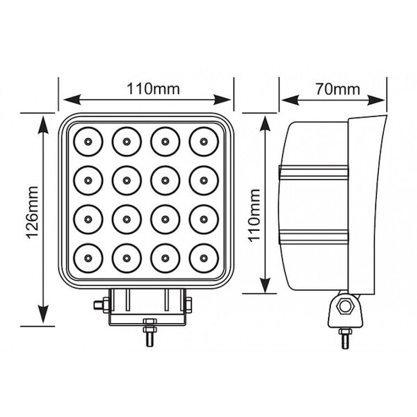 LED světlo na auto, kamion nebo pracovní stroj. Světlomet obsahuje 16 výkonných diod.