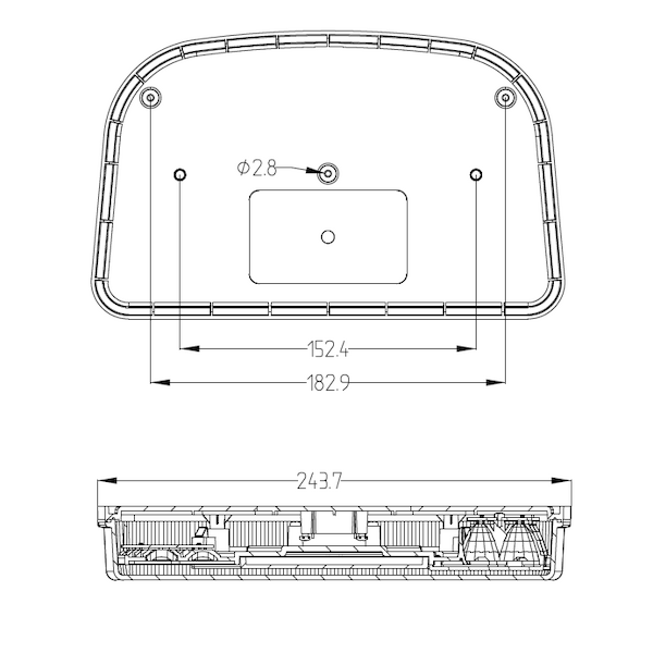 LED koncové, brzdové, směrové, mlhové, zpátečkové a SPZ světlo; P; 243,7 x 148,4 x 38; 9-33V