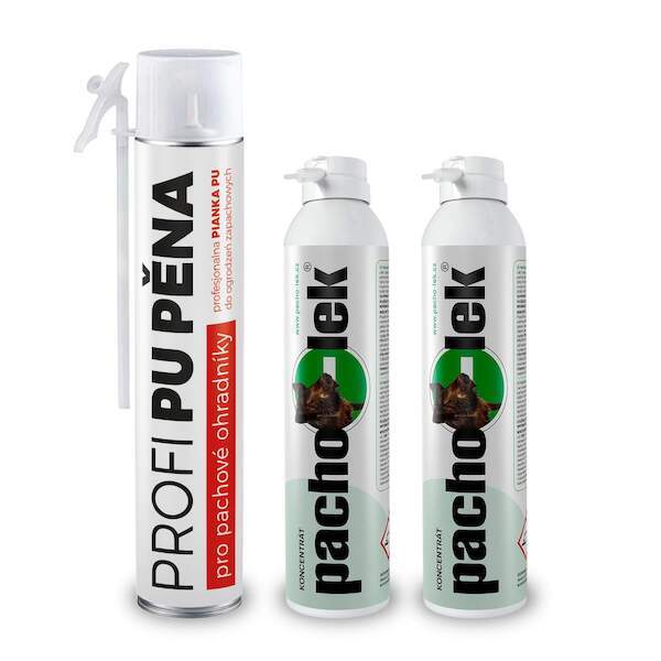 Sada obsahuje 1ks PU pěny a 2 ks pachového koncentrátu proti divočákům.