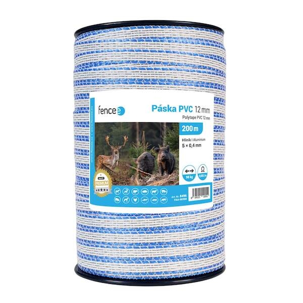 Páska PVC pro elektrický ohradník, šířka 12 mm, bílo-modrá, 200 m, 0,017 Ω/m od výrobce VNT electronics s.r.o. s kat. kódem FE 8496: