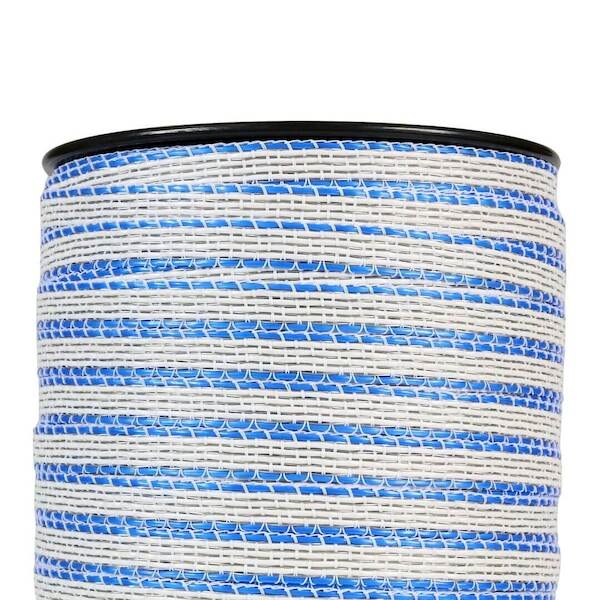 Páska PVC pro elektrický ohradník, šířka 12 mm, bílo-modrá, 200 m, 0,017 Ω/m