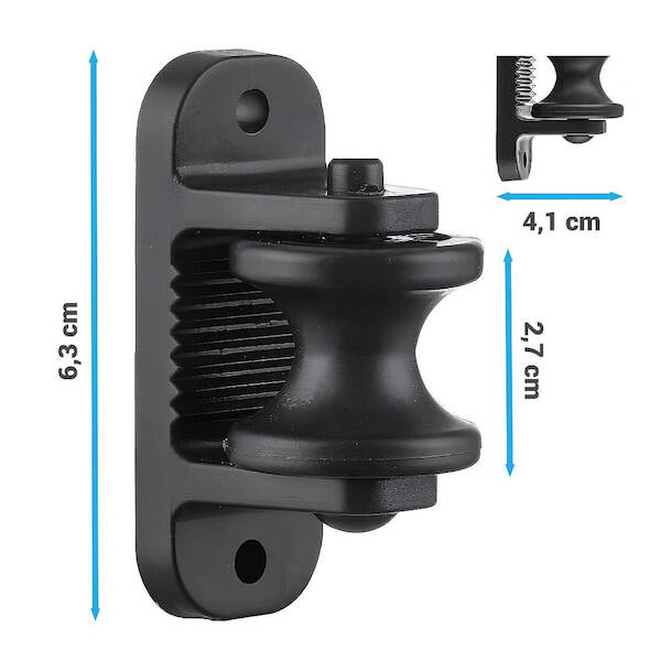 Rohový plně otočný izolátor vhodný hlavně pro lana s maximálním průměrem 8 mm. Přidělání na 2 vruty. Odnímatelná plastová rolna.Technicke parametry produktu Rohový otočný izolátor s rolnou pro lana do 8 mm, na vruty - 4 ks od vyrobce VNT electronics s.r.o. s kat. kodem FE 8551.