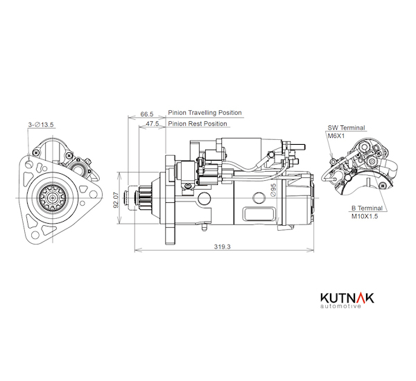 STARTÉR 24V / 6,5kW 11 zubů - ORIGINÁL MITSUBISHI od výrobce Kutnak s kat. kódem 723490/M: