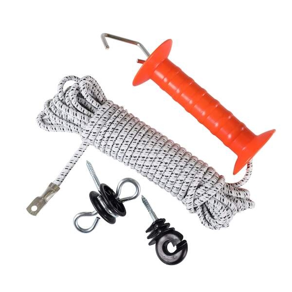Bránová sada s gumou pro bezpečný vstup do ohrady. Sada je složena z flexibilního vodiče, vč. kvalitní rukojeti s izolací a tahovou pružinou. Snížení rizika zranění zvířat. Pro všechny druhy zvířat, obzvláště pro elektrické ohrady pro koně.Technicke parametry produktu Vchodová brána rukojeť s gumou pro elektrický ohradník - 10 m od vyrobce VNT electronics s.r.o. s kat. kodem FE 8443.